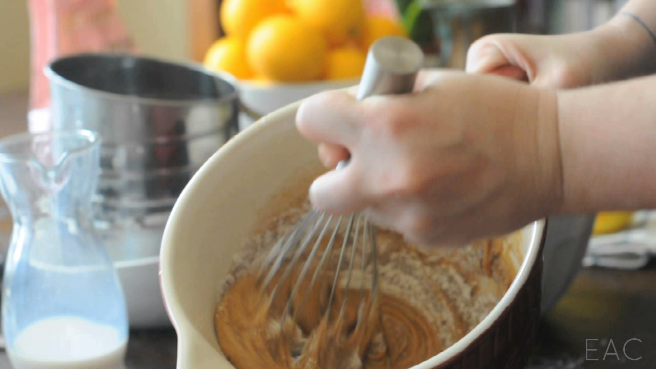 3. In another bowl, combine and sift together teff flour, all-purpose flour, salt, and baking powder. Mix in lemon zest.
