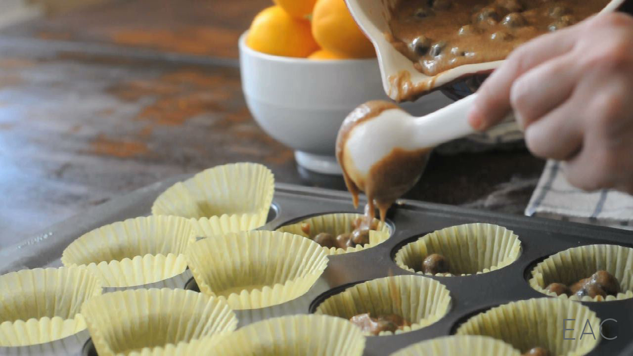 5. Evenly spoon batter into muffin liners.