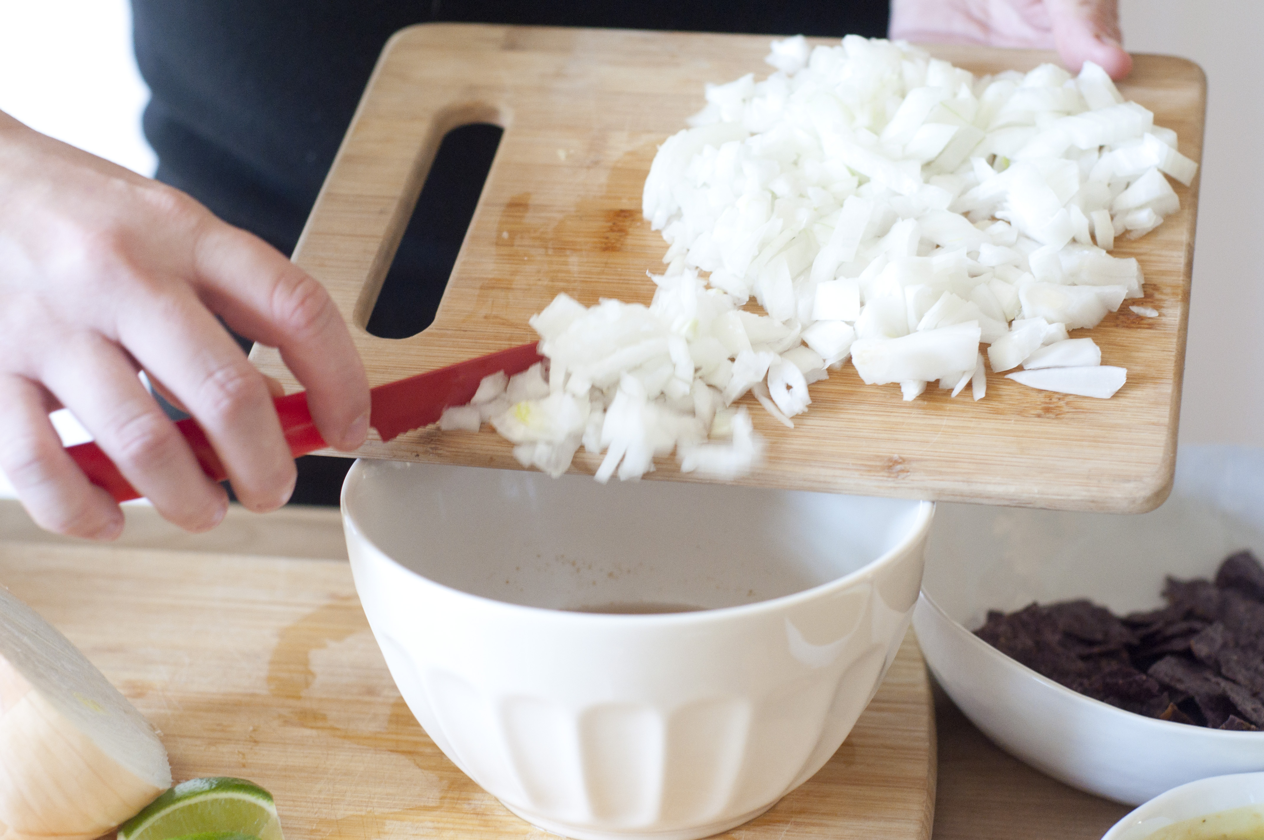 Our marinade was a light (and slightly boozy) tequila-honey-lime concoction with onions and spices. We decided on some healthy, colorful veggies for garnishes, such as a red cabbage slaw, avocado cream, and a sprinkling of cilantro.