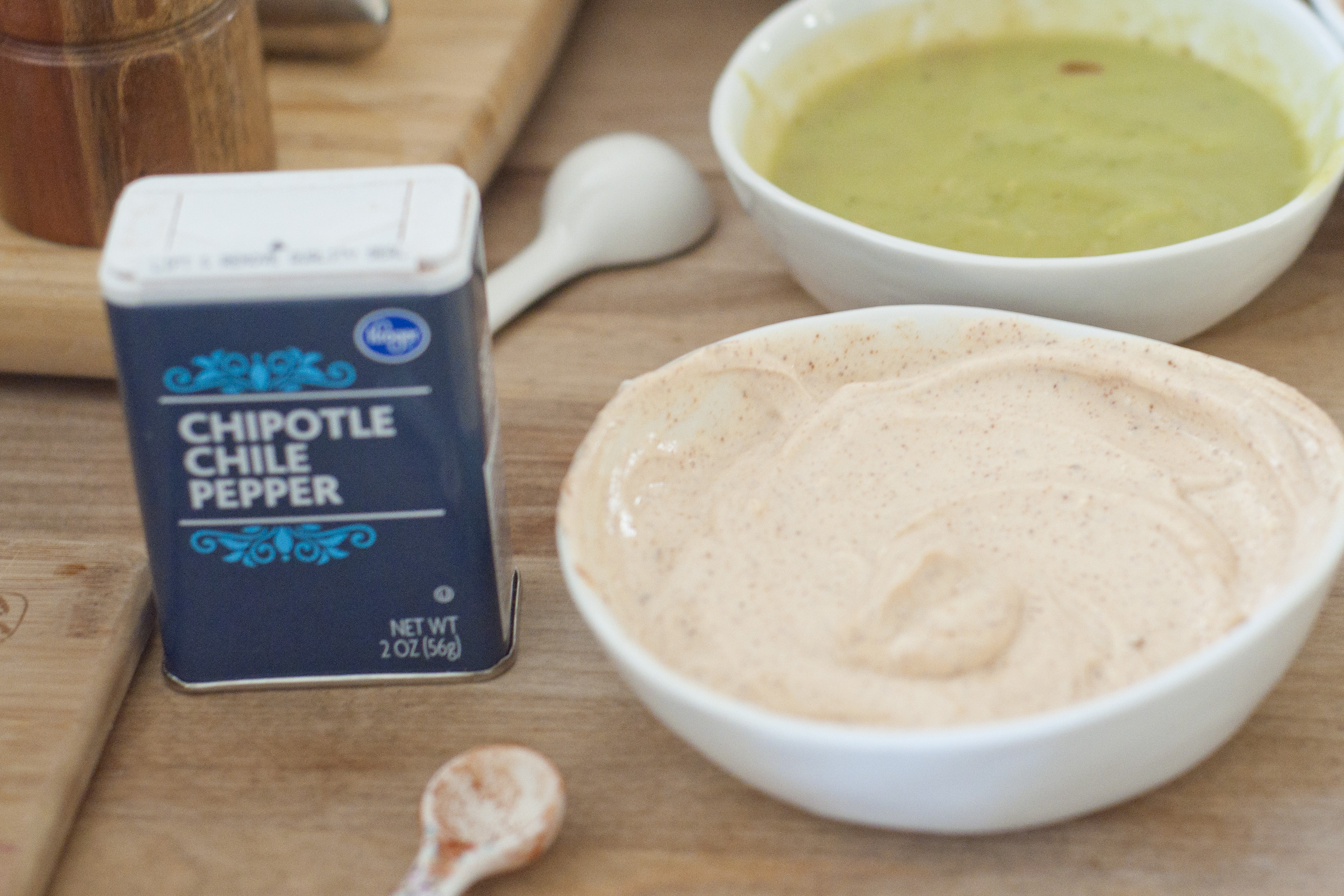 7. For the avocado crema, mash two avocados and combine with sour cream, lemon juice, chipotle chili powder and sea salt. Set aside.